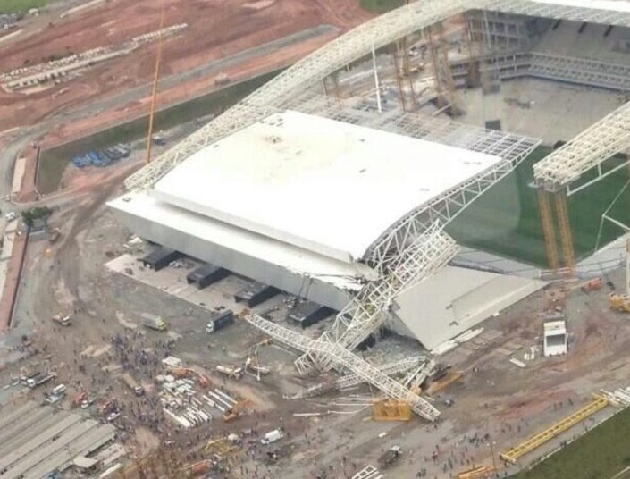 Além do acidente na Arena Corinthians, outras duas mortes foram registradas em obras de estádios que serão usados em jogos da Copa do Mundo de 2014. Em junho de 2012, o carpinteiro José Afonso de Oliveira Rodrigues, 21 anos, morreu ao cair de uma laje do Estádio Nacional de Brasília. Em março de 2013, o pedreiro Raimundo Nonato Lima Costa, 49 anos, morreu na construção do estádio de Manaus. Também foram registrados uma explosão na Arena da Baixada, em Curitiba no ano de 2012, e um princípio de incêndio na Arena Pantanal, em Cuiabá, em 2013. Simultaneamente, morreu Nilton Santos, considerado o maior lateral-direito da história do futebol. Mas, quando vivemos sem sonhar, não temos a consciência de que existimos. Então, vamos sonhar com o sucesso da Copa do Mundo.